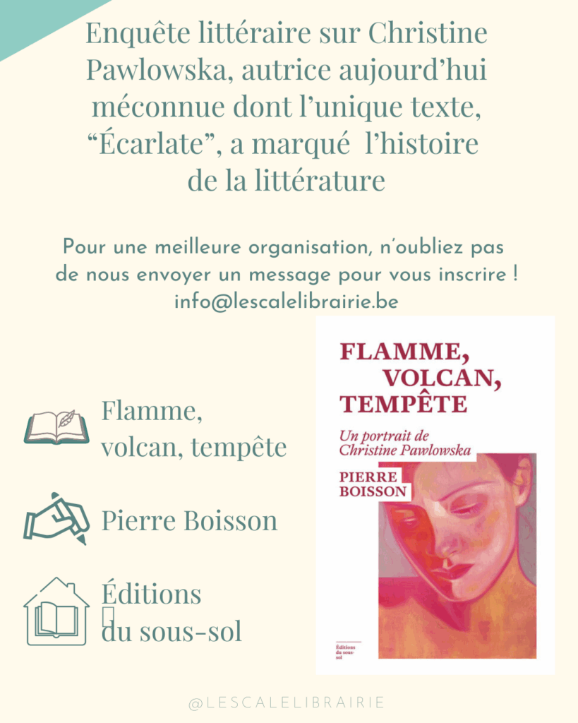 Rendez-vous le 14 novembre à 18h30 pour découvrir non pas un, mais deux textes ! Pierre Boisson viendra nous parler de son livre “Flamme, volcan, tempête”, un récit non fictionnel retraçant l’histoire d’un texte unique et de la disparition de son autrice tout aussi particulière…